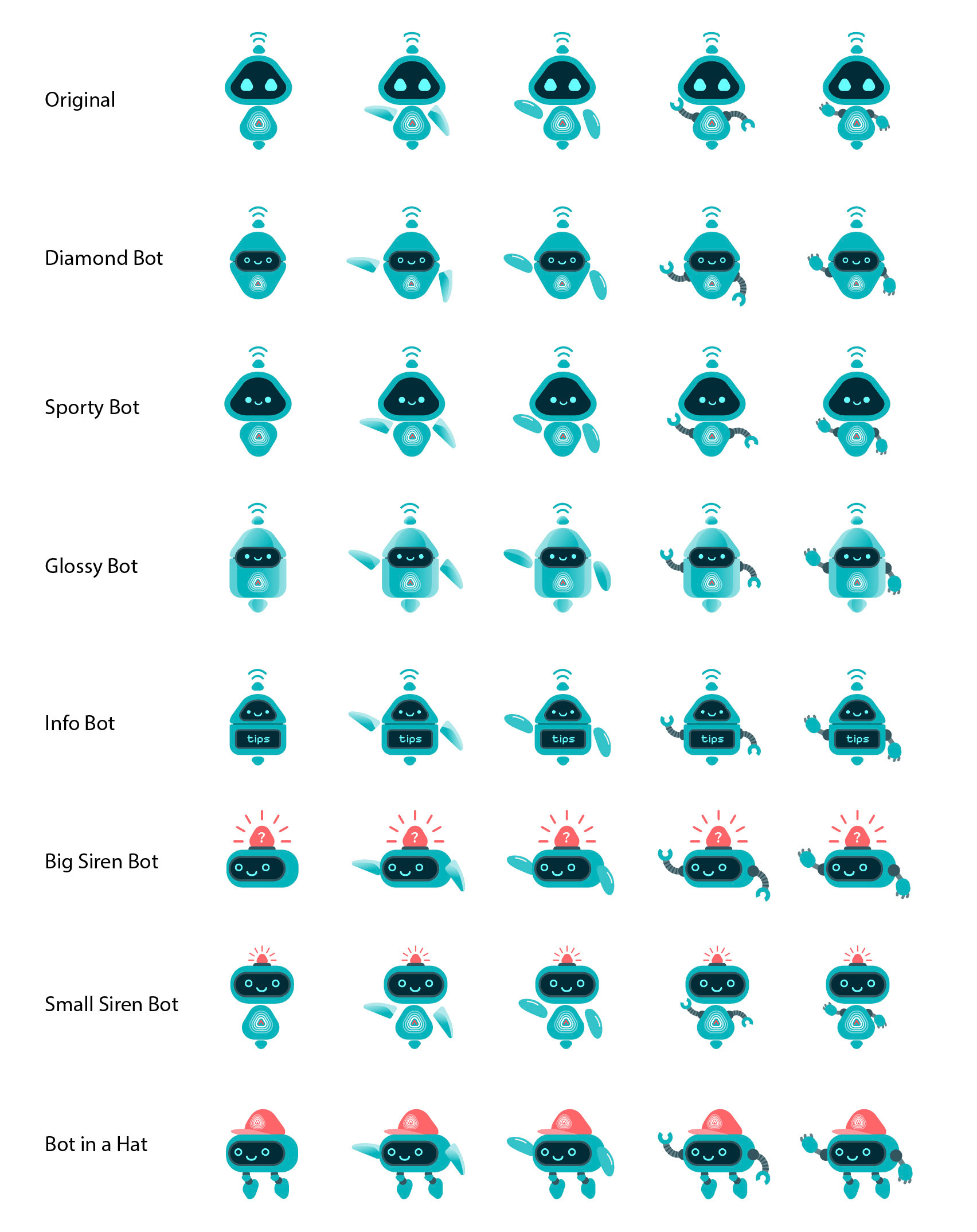 Through multiple explorations and quick stakeholder tests, everyone aligned on keeping the simpler version of the robot design, but add expression and emotion via motion design in the later stage.